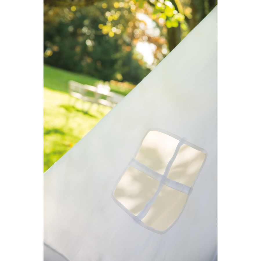 Tenda degli indiani in robusto materiale canvas e telaio stabile, con aste in fibra di vetro con dimensioni HxLxL: 156x110x177cm. Il divertimento è garantito! L'ingresso alla tenda può essere aperto e chiuso semplicemente slegando il telo. Grazie alla finestrella avrai una vista verso l'esterno anche quando la tenda è chiusa. Avrai un ulteriore spazio di archiviazione grazie alla nuova tasca esterna. Inoltre la pratica borsa di trasporto inclusa ti permetterà di riporre la tenda in un armadio o dove preferisci dopo lo smontaggio. Dettagli: Inclusa borsa per il trasporto Materiali: Struttura: Fibra di vetro, Tessuto: Canvas (100% poliestere) Materiale: Tenda indiana Tipi, 115 x 115 cm, altezza: 156 cm Pulire la tenda con un panno umido Età: a partire da 3 anni