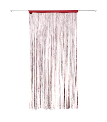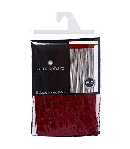 Tenda a filo pronta da applicare. Dimensioni della tenda: altezza 200 cm x larghezza 90 cm. Colore: rosso. Fissaggio: passando su tutta la larghezza della tenda. Materiale: 100% poliestere. Lavabile a mano. Marca Atmosphera.