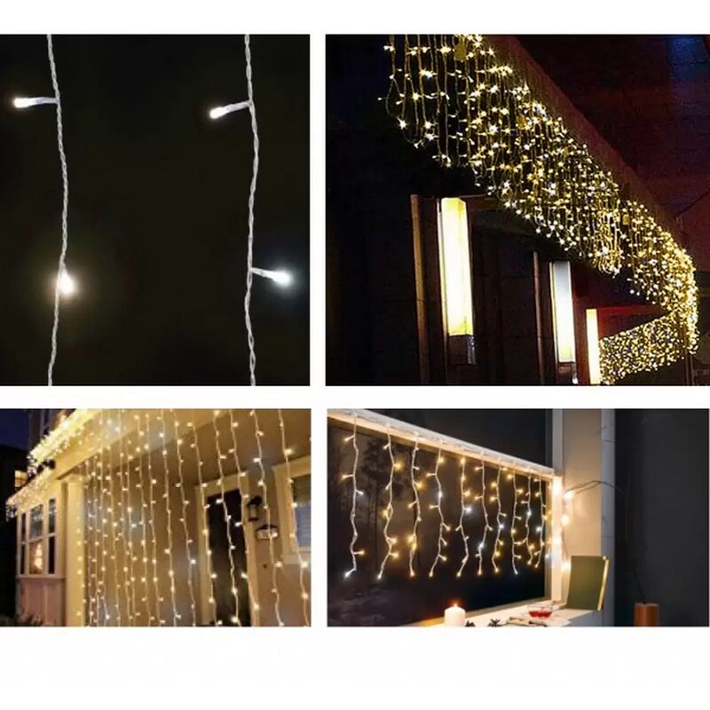 Tenda luminosa allungabile di Natale a 180 MiniLED con luci oro fisse e bianche intermittenti per uso interno e esterno. Tenda luminosa allungabile di natale con filo bianco applicabile in ambienti esterni ed interni. Adatta come decorazione e l'allestimento di case, perfetta anche per addobbare giardini, gazebi e spazi all'aperto grazie al suo grado di protezione IP44. Munita di trasformatore con luci oro fisse e bianche intermittenti. SPECIFICHE TECNICHE Numero di LED: 180 Consumo: 7,4W Colore luce: bianca e oro Lunghezza cavo: 1,5 mt Lunghezza tenda allungabile: 4 mt Grado di protezione: IP44 Peso: 0,50 g