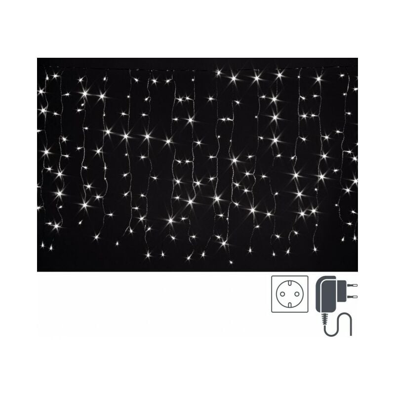 Tenda 400led, luce fredda, dimensione led 5mm. filo trasparente, misura 4x1mt, lunghezza totale 7mt, lunghezza cavo di alimentazione 3mt, lunghezza filo luci 4mt, distanza led 10cm, distanza tra i fili luce 10cm. dotato di presa schuko. 8 giochi luce con memory. per uso interno-esterno ip44. con colour box. con trasformatore 31v3.6w.
