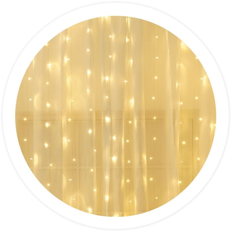 La Tenda LED Luminosa 2x1M a luce calda è l'opzione perfetta se vuoi aggiungere un tocco accogliente ed elegante ai tuoi spazi. Con il suo design versatile e affascinante, questa tenda di luci offre un'atmosfera calda e accogliente ovunque. Questa tenda è dotata di 100 LED a luce calda disposti uniformemente lungo un'area di 2x1 metri. La luce calda fornisce un'illuminazione morbida e rilassante, ideale per creare un'atmosfera piacevole ed elegante in occasione di eventi speciali. Una caratteristica pratica di questa tenda a LED è il timer programmabile. Puoi impostarlo per accendersi automaticamente per 6 ore e spegnersi per 18 ore, permettendoti di goderti l'illuminazione durante i momenti più importanti del tuo evento senza preoccuparti di spegnerlo. Il cavo di questo tenda È trasparente e ha uno spessore di Ø1,5 mm, che gli conferisce un aspetto pulito e discreto. Inoltre, il suo grado di protezione IP44 lo rende impermeabile, il che significa che puoi utilizzarlo sia all'interno