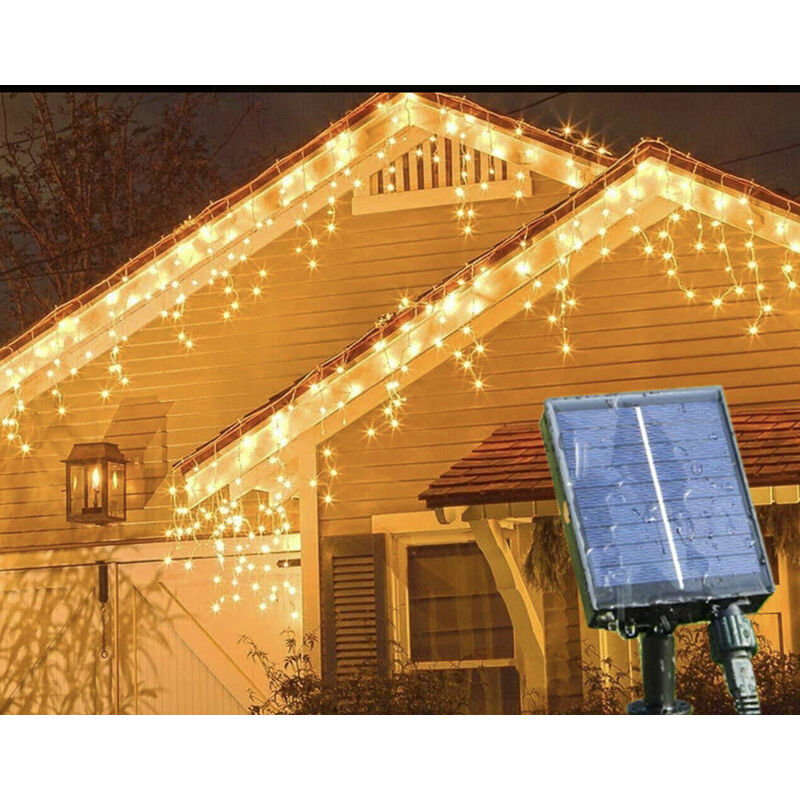 Tenda luminosa solare di Natale a 280 LED con 8 giochi di luce per uso interno e esterno. Tenda luminosa di natale con filo trasparente applicabile in ambienti esterni ed interni. Adatta come decorazione e l'allestimento di case, perfetta anche per addobbare giardini, gazebi e spazi all'aperto grazie al suo grado di protezione IP44. Munita di trasformatore e controller con 8 giochi di luci tra cui pure la modalità fissa, può essere ricaricata grazie all'energia solare. SPECIFICHE TECNICHE Numero di LED: 280 Colore luce: calda Lunghezza cavo: 4 mt Lunghezza tenda: 2 mt Grado di protezione: IP44 Peso: 0,50 g