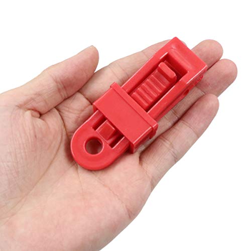 Clip per tenda da 10 pezzi di colore rosso, 83 mm x 25 mm x 13 mm, la bocca a ingranaggio assicura che la clip morda saldamente il telone. Sull'altro lato si trova un foro che permette di collegare bottoni o corde in metallo.