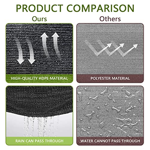 Facile da installare: basta tirare la corda attraverso gli occhielli, quindi allungare la rete parasole e appenderla per ottenere un perfetto ambiente di ombra e rimanere fresco. È anche possibile legare i teloni per esterni direttamente con fascette o stenderli direttamente sopra una pergola/pollaio o un pollame. Non preoccupatevi se scegliete una grande rete ombreggiante, ogni telo in rete ha un occhiello in alluminio ogni 1 m su tutti e quattro i lati.