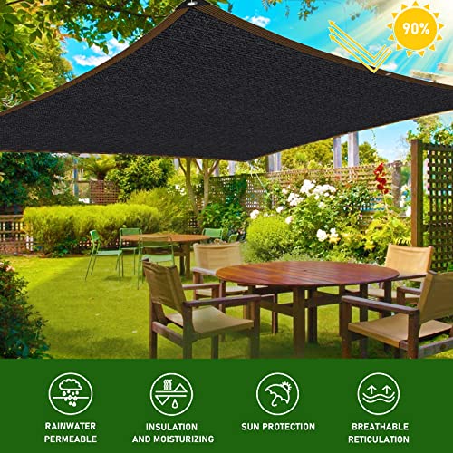 Tenda da sole - 2 x 2 m con occhielli, 90% protezione solare per balcone, colore nero, in tessuto per terrazze, terrazze, protezione UV per piante, piscina, pollaio