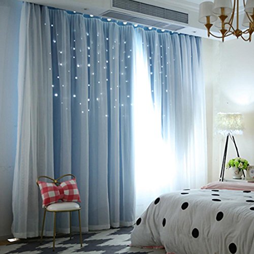 Tenda Oscurante con Occhielli per Finestre Tende Doppio Strato Stelle Tenda Oscurante Termica per Interni Decorazioni per Balcone Finestre Decorazione 100 X 200cm (Blu, 1 Pannello)