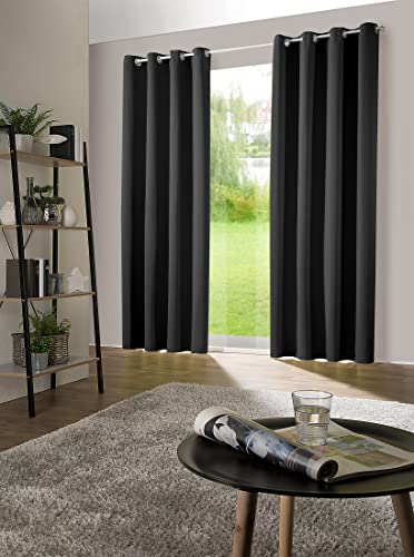 Tenda oscurante/termica XXL con occhielli, opaca, 245 x 275 (A x L), isolamento da freddo e caldo,pronte all'uso, tenda decorativa tipo 139., Tessuto, nero, HxB 245x275 cm