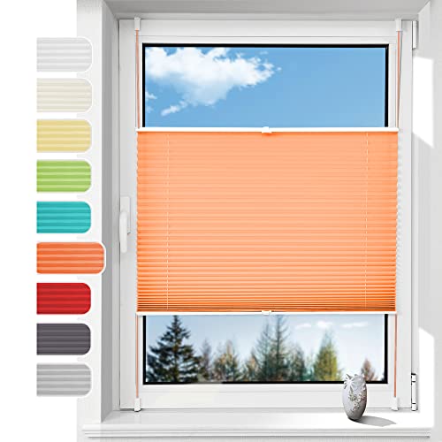 OUBO Tenda Plissettata Oscurante Tenda Plissettata Senza Fori Arancione 40 x 120 cm Klemmfix Montaggio Senza Viti Supporti a Morsetto per la Finestra, Tenda Veneziana Senza forare