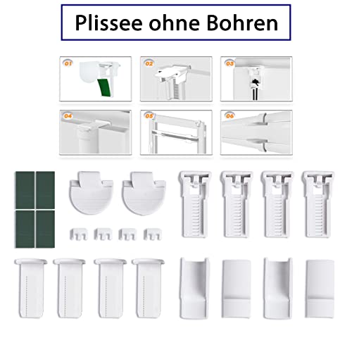 Montaggio semplice, senza necessità di foratura: La tenda plissettata Klemmfix può essere fissata facilmente e rapidamente grazie ai 4 morsetti in dotazione.