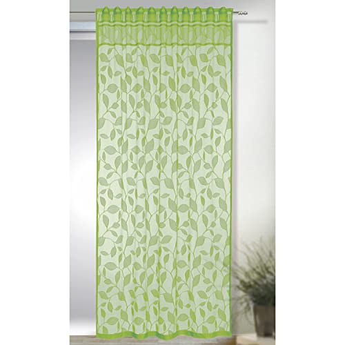 Elegante tenda con motivo a foglie per rendere ancora più bella la stanza. Le foglie cadono elegantemente e danno alla stanza un ambiente delicato. I fori nella parte superiore consentono un facile fissaggio all'asta della tenda e garantiscono una bella caduta del tessuto.