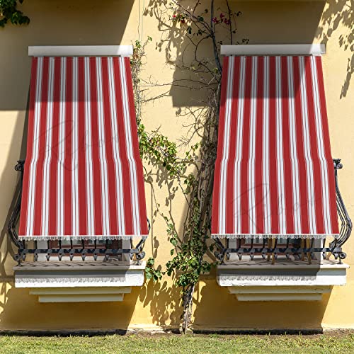 Tenda da Sole a Righe con Ganci ed Anelli da Esterno Balcone Veranda Terrazzo Giardino Patio Camper Tessuto Resistente Misura cm 145x250 Colore Rosso Bianco Protezione dai Raggi UV (4)
