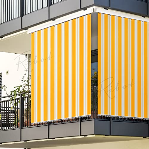 Tenda da Sole a Righe con Ganci ed Anelli da Esterno Balcone Veranda Terrazzo Giardino Patio Camper Tessuto Resistente Misura cm 145x290 Colore Giallo Bianco Protezione dai Raggi UV (12)