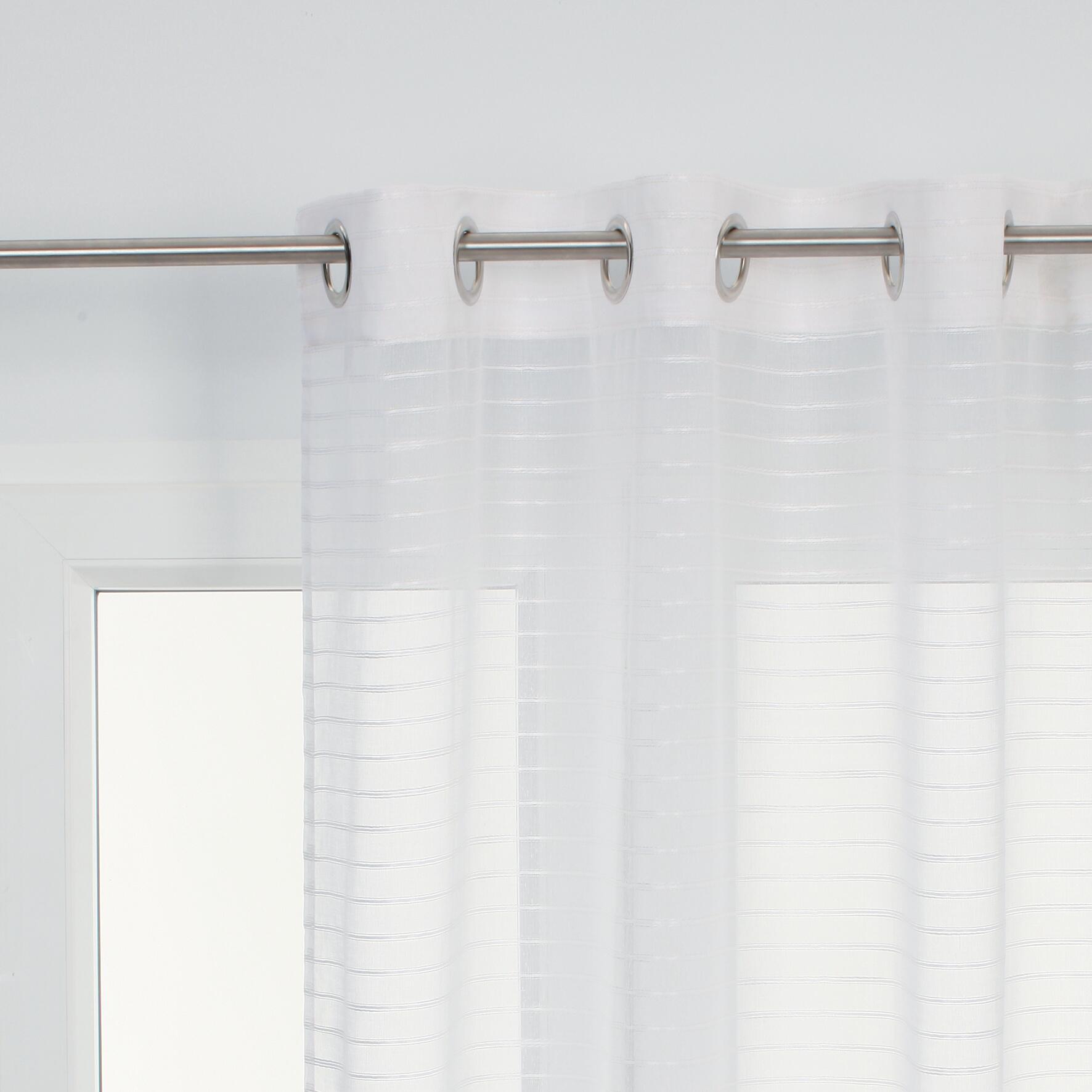 Scaldare l'atmosfera della casa non è mai stato così semplice come con la tenda Righe Orizzontali che, con la sua tonalità tenue, si sposa a meraviglia con tutti i tipi di arredo. Questa tenda a righe conferirà personalità e un carattere originale alla stanza. Bellezza, geometria e funzionalità sono le parole chiave.. Le tende filtranti mantengono la privacy e al contempo lasciano filtrare la luce, consentendo di vedere fuori dalla finestra. Per garantire maggiore privacy si consiglia di aggiungere due teli. Il poliestere è un materiale sintetico. Le fibre in poliestere non perdono facilmente il colore, e quindi possono essere lavate tranquillamente. Un altro motivo in più per scegliere questo modello realizzato in poliestere. Questa tenda è caratterizzata da una finitura a occhielli che scorre facilmente sul bastone.. Orlo semplice. Puoi adattarla facilmente alle misure della tua finestra. Per prendersi cura al meglio della tenda, si invita a usare la lavatrice fino a un massimo di 30°. Dopo il lavaggio di fibre sintetiche, è normale notare un rimpicciolimento massimo del 2%.
