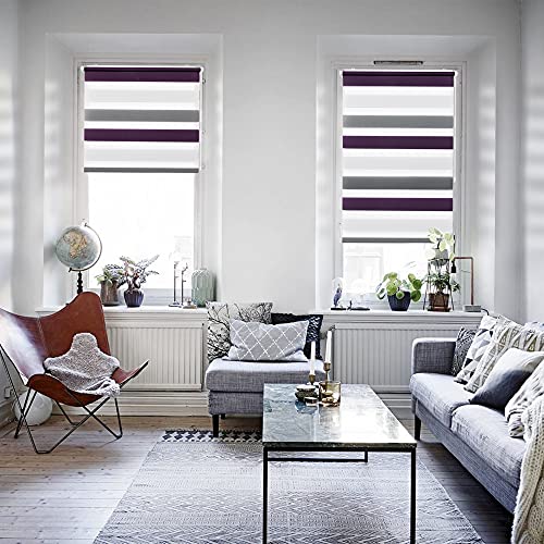 Tenda a Rullo doppio Senza Fori Tenda doppia Rullo Tenda Porta Finestra Bianco-antracite-melanzana 80x150cm