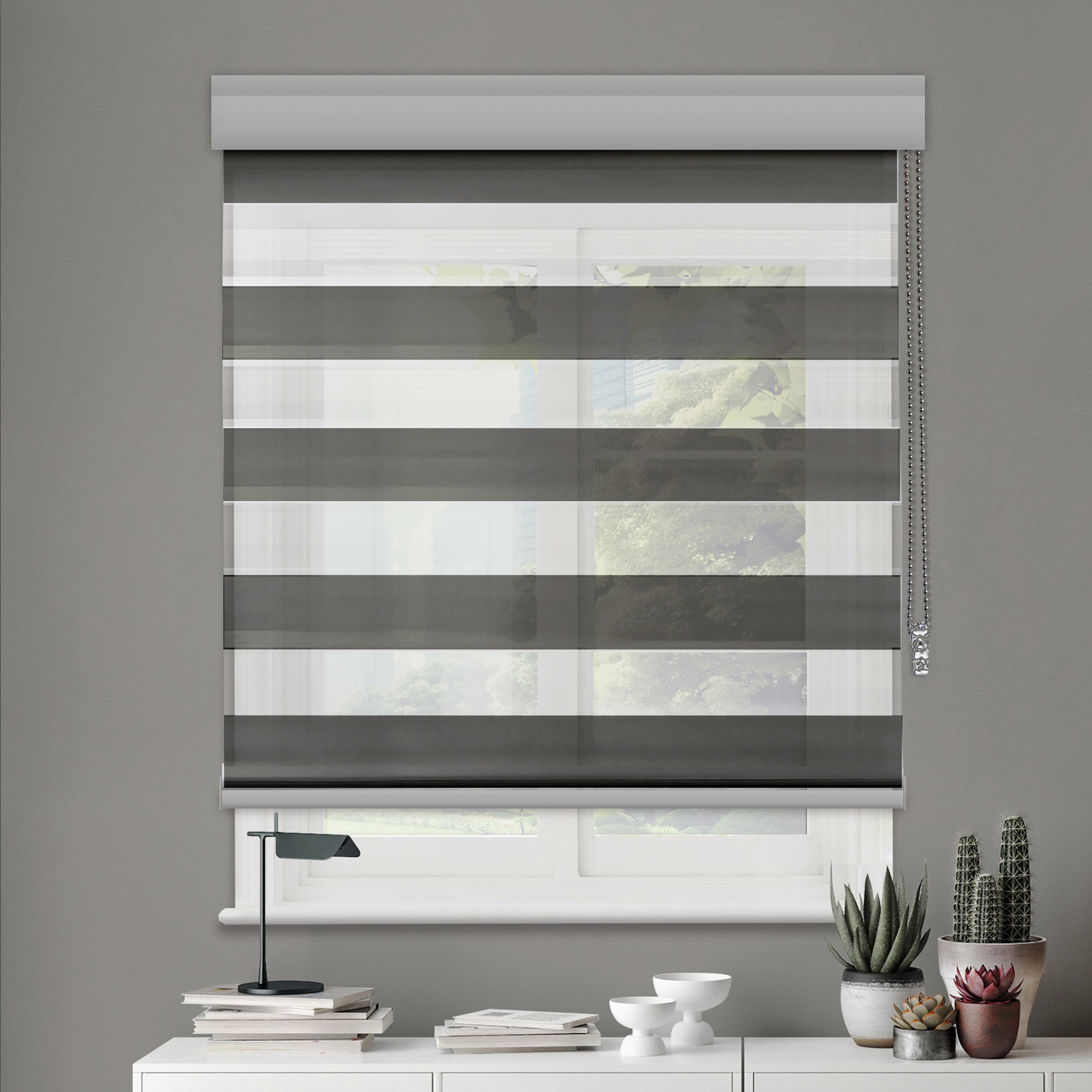 Tenda a rullo effetto vedo non vedo. Il suo nome viene del doppio tessuto con sistema « giorno e notte ». Ha delle fasce trasparenti e pesanti in modo tale da alternare la luce. Questa tenda versatile, lascia passare la luce. Le finiture sono di alluminio con cassonetto. Semplice da installare. Si pulisce semplicemente, utilizzando un panno umido. Componenti di alta qualità con blocca catena di sicurezza per bambini. La tenda si arrotola lentamente e silenziosamente. Placchette per fissaggio incluse. Non teme l'umidità. Disponibile anche in altre misure e in altri colori. Si adatta facilmente alle misure della tua finestra perché riducibile in larghezza.