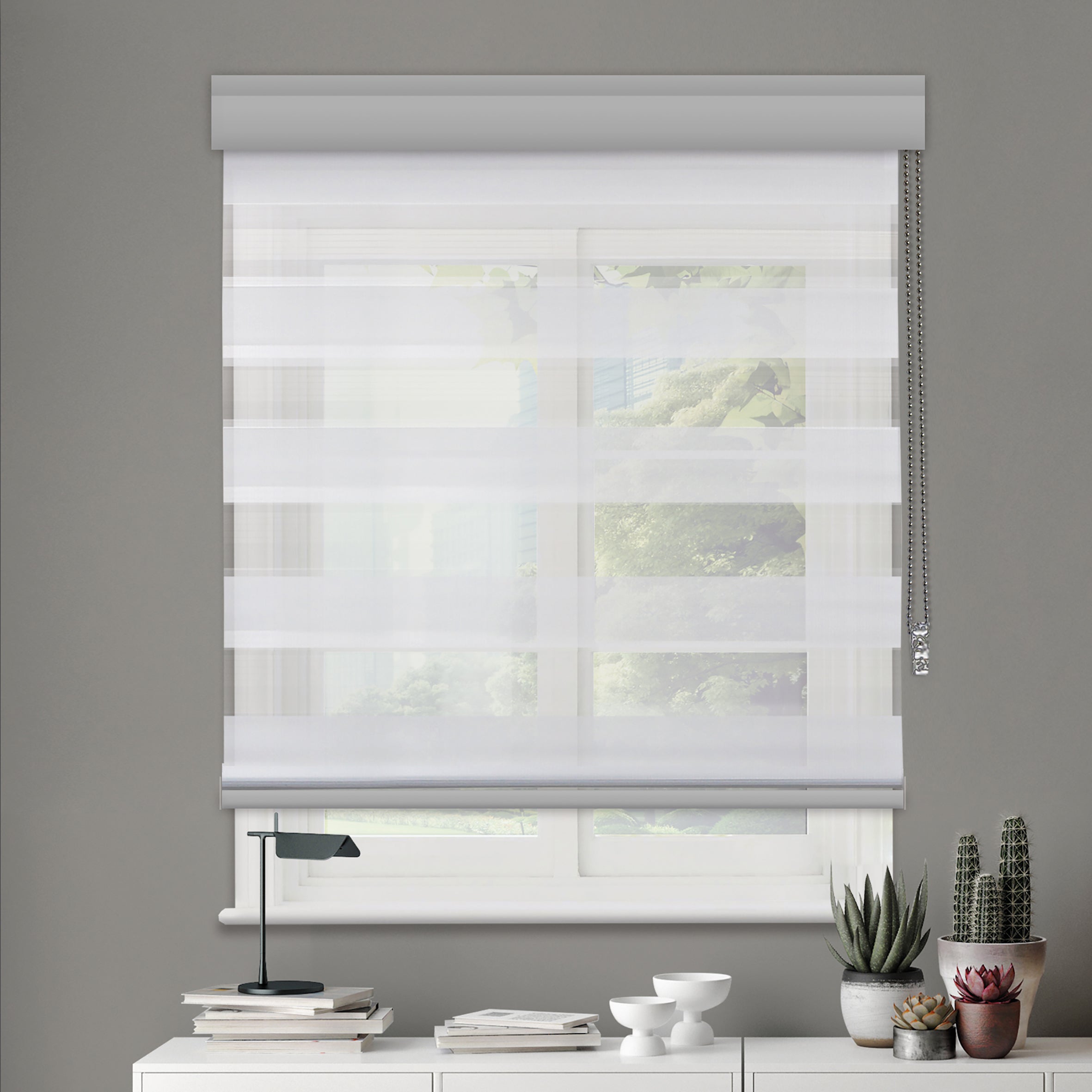Tenda a rullo effetto vedo non vedo. Il suo nome viene del doppio tessuto con sistema « giorno e notte ». Ha delle fasce trasparenti e pesanti in modo tale da alternare la luce. Questa tenda versatile, lascia passare la luce. Le finiture sono di alluminio con cassonetto. Semplice da installare. Si pulisce semplicemente, utilizzando un panno umido. Componenti di alta qualità con blocca catena di sicurezza per bambini. La tenda si arrotola lentamente e silenziosamente. Placchette per fissaggio incluse. Non teme l'umidità. Disponibile anche in altre misure e in altri colori. Si adatta facilmente alle misure della tua finestra perché riducibile in larghezza.