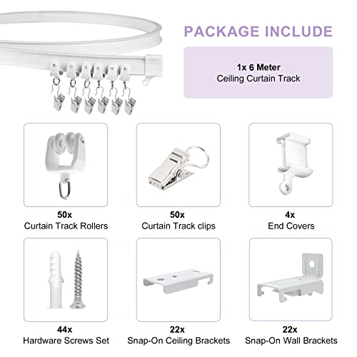 Binari per tende da soffitto e accessori e garanzia: riceverai 1 binario per tende curvo da 6 m, 50 clip per binari per tende, 50 guide per tende, 4 fermaporta per tende, 22 staffe per soffitti a scatto, 22 staffe da parete a scatto e viti necessarie. Qualsiasi accessorio è mancato