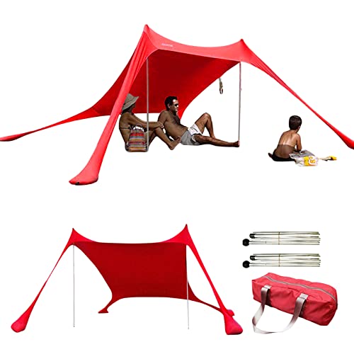 ↩ Prestazioni superiori: la nostra grande tenda da spiaggia è realizzata in tessuto lycra resistente ed elastico, con protezione UPF 50+ e funzione impermeabile, che può fornire ombra per le tue vacanze al mare all'aperto.