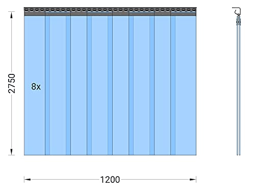 Tenda a strisce in PVC, lamelle 2x200 mm, altezza 2,75 m x larghezza 1,20 m, preinstallata, acciaio inox, tenda stabile, tenda a strisce in PVC