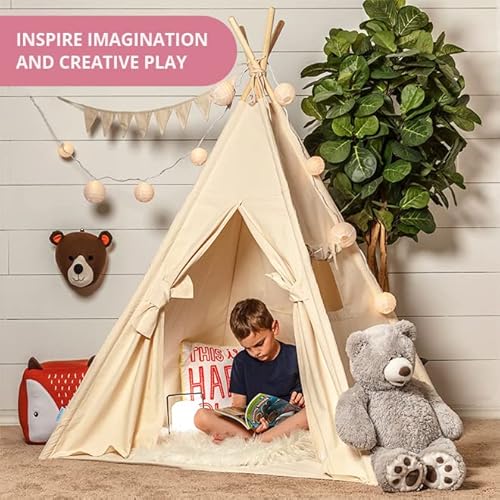PREMIATA TENDA TEEPEE PER BAMBINI: Splendidamente realizzata con materiali naturali come la spessa tela cucita, la resistente corda di sicurezza e i robusti pali di pino. Una tenda da gioco che soddisfa gli standard di sicurezza dei giocattoli dell'UE, il che significa anni di divertimento sicuro e di gioco immaginativo per i bambini.