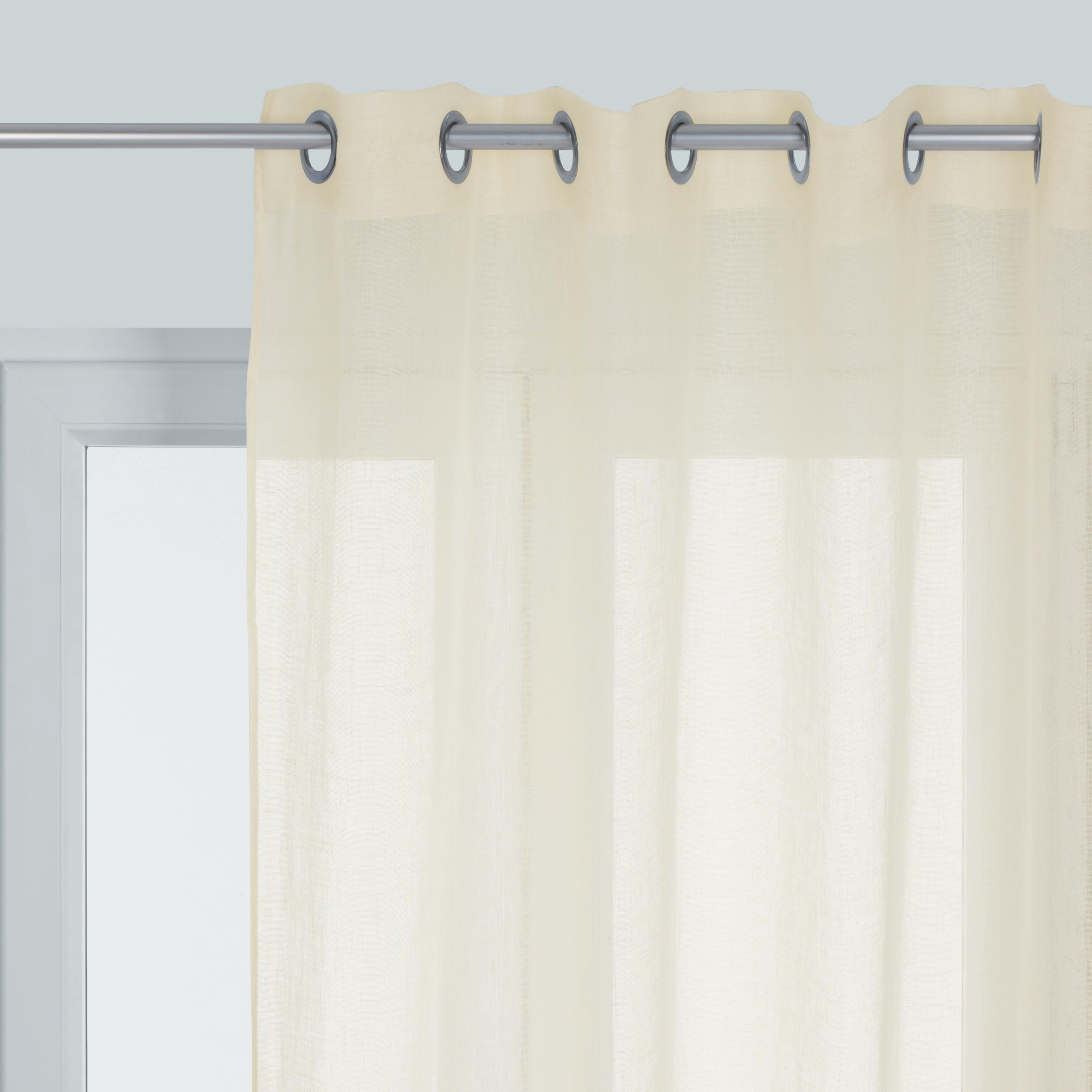 Con le sue dimensioni di 150x280 cm, la tenda Voile De Lin è perfetta per qualsiasi tipo di interni. La tinta unita si abbina sia a un ambiente classico che a una casa moderna. Semplice ma fine, il suo stile Essentiel rende la tenda adatta a qualsiasi stanza della casa.. Avere uno spazio illuminato preservando la propria privacy è possibile, grazie alle tende filtranti. Per una privacy ancora maggiore, è possibile aggiungere due teli. Questa tenda è interamente realizzata in lino. Il lino è un materiale resistente al calore in quanto fibra conduttrice di calore e resistente all'invecchiamento, infatti resta intatto a lungo tempo. Questa tenda è contraddistinta da una finitura a occhielli che scorre facilmente sul bastone.. Orlo semplice. Puoi adattarla facilmente alle misure della tua finestra. Si raccomanda di lavare a secco. Può subire un restringimento massimo del 3% nel prodotto a seguito del lavaggio. Successivamente al lavaggio, un restringimento fino al 2-3% è ritenuto nella norma per le fibre naturali.