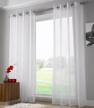 Tenda in voile semi-trasparente tinta unita, con occhielli, pronta all'uso, Poliestere, White, 59" x 84"