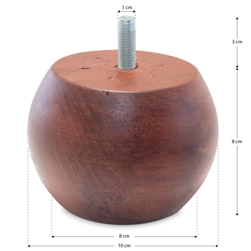 TENDAGGIMANIA ® Piedini per Mobili, Divano, Poltrone e Pouf - Piedini in Legno Colore Noce - Modello Cipolla - 8 CM - 1 Pezzo