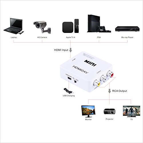 Tendak 1080P da HDMI a AV 3RCA CVBS Video Composito Convertitore Audio Adattatore Supporto PAL/NTSC con USB cavo di ricarica per PC portatile Xbox PS3 TV STB VHS VCR Videocamera DVD