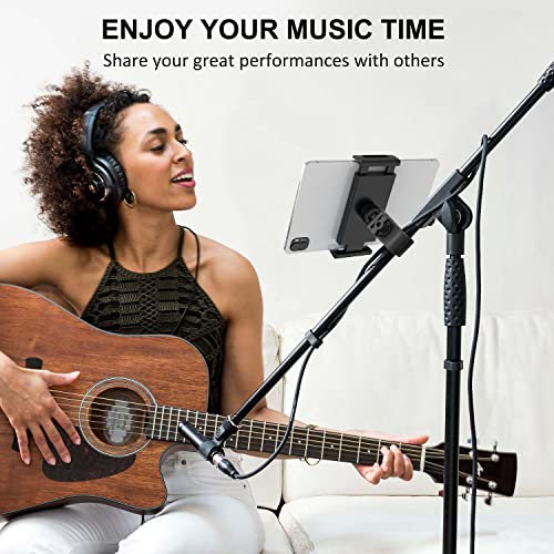 【Supporto per tablet multifunzione per cyclette per tapis roulant】Assicurati di poter leggere messaggi, guardare film e persino chiamate Skype su cyclette, tapis roulant, ellittica o qualsiasi attrezzatura da allenamento con manubrio. Questo supporto per tablet può anche essere fissato allo stelo o manubrio del poggiatesta dell'auto, supporto per microfono, carrello.