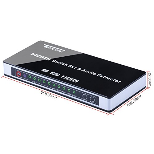 Tendak - Switch HDMI 4K HDMI Switch 5 HDMI 5 a 1 con SPDIF e estrattore audio L/R con telecomando, supporta Arc HDMI 1,4