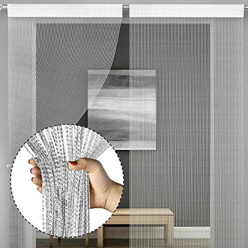Splendido design: i pannelli delle tende con perline di cristallo hanno una splendida lamina di lurex color argento, il tessuto può essere lavato.