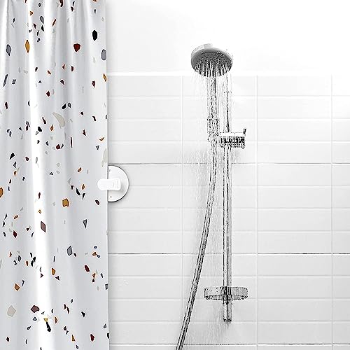 【Design unico】 Speciale progettato per l'uso con tende da doccia per evitare fastidiosi spruzzi d'acqua e vento. grande disco saldamente attaccato al muro, bella forma, clip antiscivolo, evita il vento e gli schizzi d'acqua. Fornisci un ambiente perfetto per la doccia con 8 clip per tende da doccia.