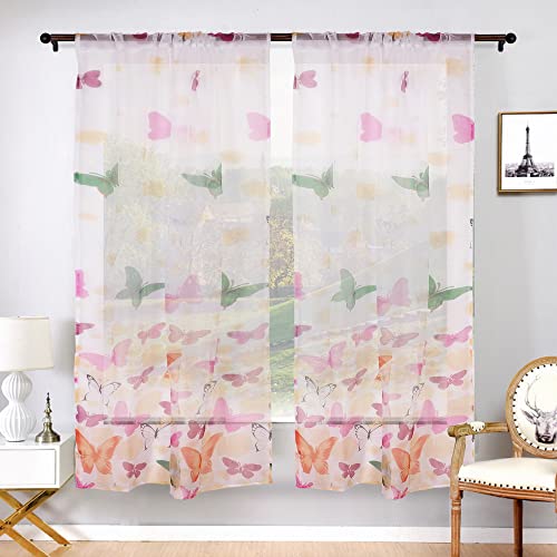 Tende da sole Tende da finestra Tenda da finestra trasparente Farfalla Tenda con occhielli Tenda di poliestere bianca 100 X 200 cm Decorazione da camera da letto romantica da sogno (farfalla)