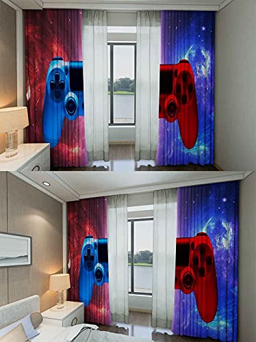 Tende da gioco per camera da letto dei ragazzi, tenda per videogiochi, decorazione per la camera dei bambini, con galassia, colore: blu, rosso, set di 2 pannelli (multi 3,6 x 228,6 cm)