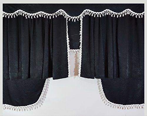 Set di 5 tende nere con nappe bianche, taglia universale, per tutti i modelli di camion, accessori per cabina, decorazione in tessuto felpato