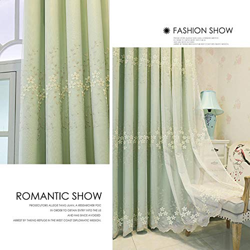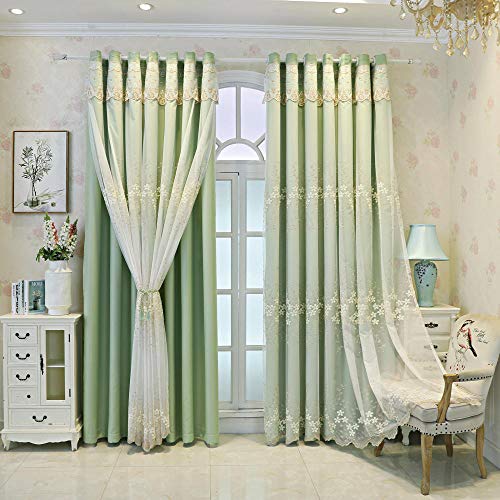 Tende Oscuranti Doppio Strato, Verde Tulle Isolamento Acustico e Termico Tende per Camera da Letto con Occhielli Ricami in Pizzo, 400x270cm, 1 Pannelli