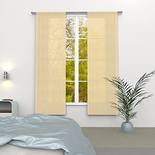 OXYN Tende 2 Pezzi 70x240 cm Semi Trasparenti Effetto Gessato con Paillette Finestre Poliestere per Soggiorno Interni Balconi Elegante Camera Letto Cameretta Casa Passanti 2.4cm (Caffè)