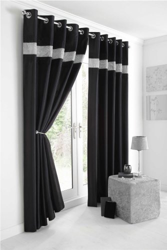 Tende rivestite con strass argentati, di colore nero e argento, con occhielli, da circa 168 x 183 cm