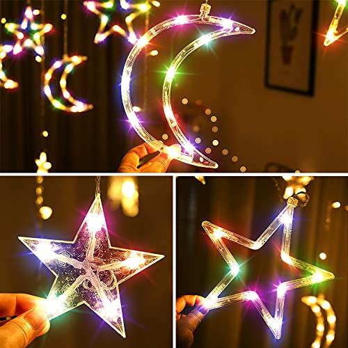 Luce per Tende a Stella Lunare,Luci Colorate per Tende da Finestra Con Telecomando,Lucine per Cortile, Giardino,Patio,Casa,Decorazioni Natalizie