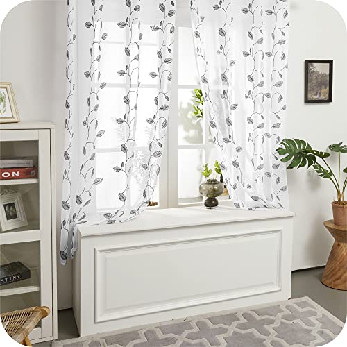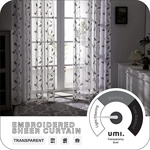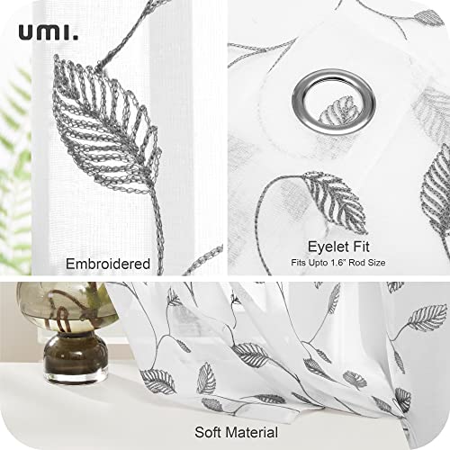 UMI Tende Trasparenti in Voile Foglia Ricamata per Camera da Letto Moderne con Occhielli 140x260cm Grigio 2 Pannelli