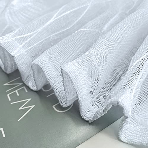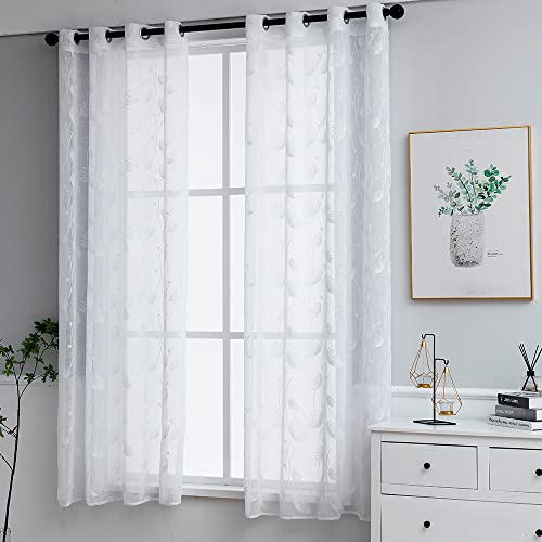 Tende Voile Trasparenti 2 Pannelli Gommino a Bastone Tenda Lunga per Finestra Tenda in Voile Ricamata 3D Tende Decorative per Cucina, Camera Da Letto, Bar, Soggiorno per Bambini (132x183 CM, Bianco-B)