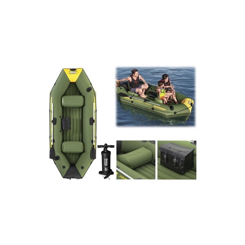 In materiale tritech ((pvc/polyestere/pvc) con 3 camere d'aria, valvole gonfiaggio/sgonfiaggio rapido. In dotazione: pagaia in alluminio da 153 cm., pompa manuale Air Hammer. Dimensioni 291x127 cm. Peso max 270 kg.