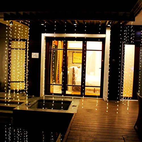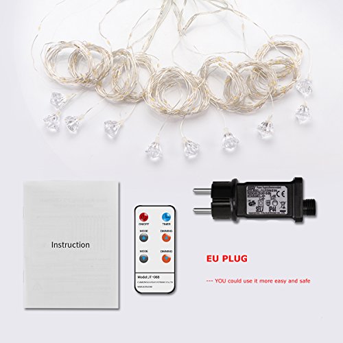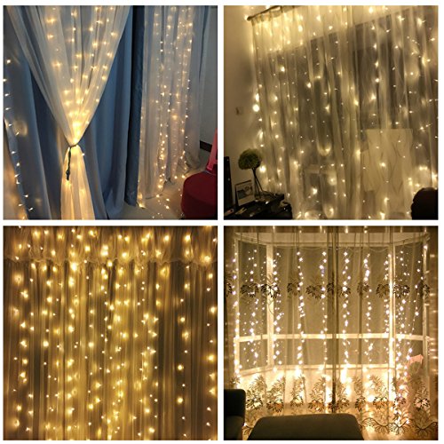 Luci a tendina con telecomando RF, ABEDOE 3x3M 300 LEDs stringa di filo d'argento con pendente e gancio diamante di cristallo