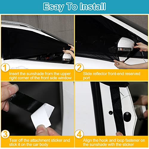 【FACILE DA INSTALLARE E RIMUOVERE】 Inserire il finestrino del parabrezza dell'auto dall'angolo in alto a destra del finestrino anteriore, inserire il riflettore nell'apertura riservata nella parte anteriore, quindi riordinare la rete, strappare l'adesivo e incollarlo sull'auto corpo, allineare la chiusura a strappo sullo schermo della finestra con l'adesivo per fissarlo. Questa visiera per finestra è anche comoda da piegare quando non è in uso.