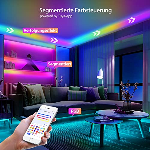 TENDIST 24M RGB+IC Striscia LED Compatibile Alexa, Smart LED Strip App Controllo Segmentario, 24V Striscia luminosa LED Autoadesiva con Telecomando, Illuminazione LED RGB per Camere, Nuvole, Giochi,