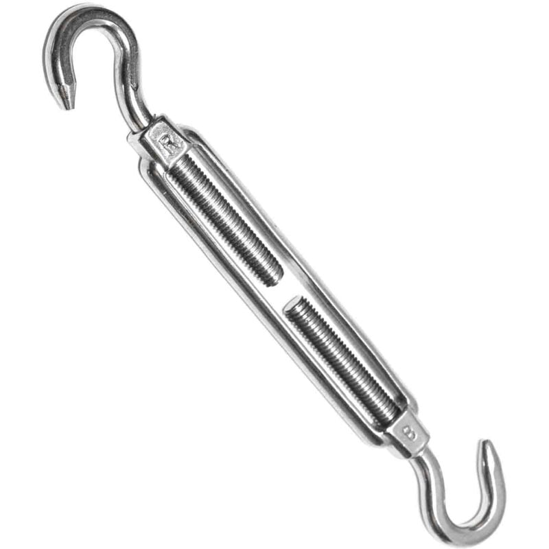e fori o ganci viti, che vengono avvitate in direzioni opposte. Gancio - Occhiello Il nostro tenditore è costituito fondamentalmente da due dadi collegati tra loro. l'altro con una rete a sinistra e una rete a sinistra gancio dritto o filettato o un gancio œillet. I tenditori vengono generalmente utilizzati in architettura