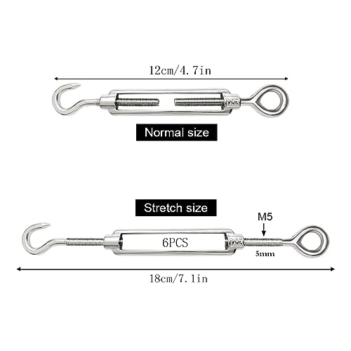 M5 Tenditore Acciaio Inox 304 Tenditore Filo Regolabile Tenditori Gancio e Occhiello per Cavi in Acciaio Tenditori per Funi (6 Pezzi)