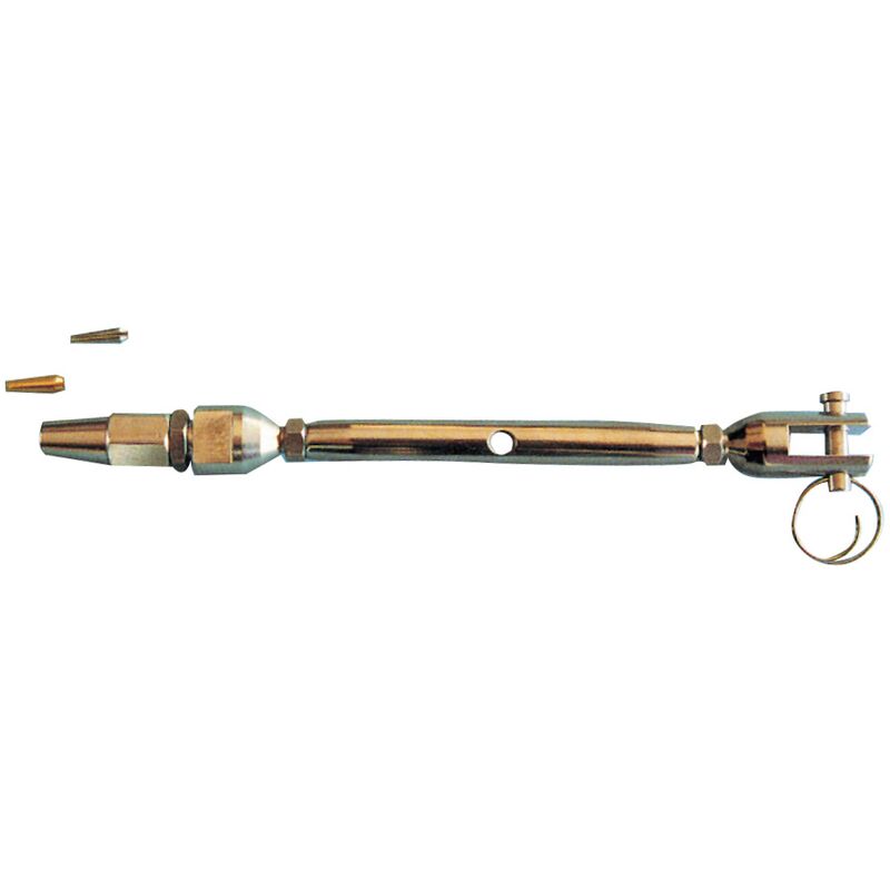 Tenditori in acciaio inox con terminale rapido, completo di due coni per il bloccaggio. Dimensioni: Cavo Ø 6mm. Filetto M12.