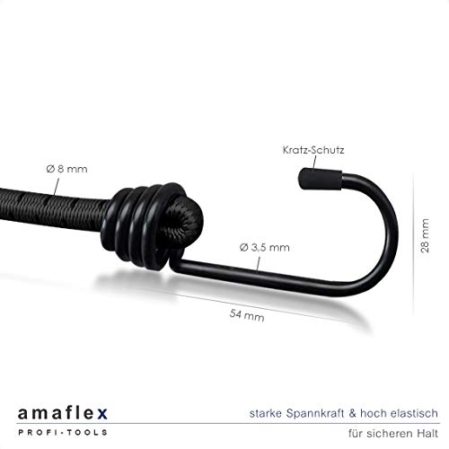 Forte - Il resistente materiale interno in lattice rende le funi di tensione in gomma molto resistenti, estremamente resistenti e antistrappo. I tenditori in gomma extra forti da 8 mm garantiscono la massima forza di serraggio ed elasticità.