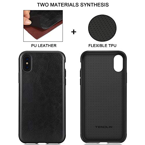 TENDLIN Cover iPhone XS Max Classica in Pelle e TPU Silicone Hybrid Cover Compatibile con iPhone XS Max (Nero)